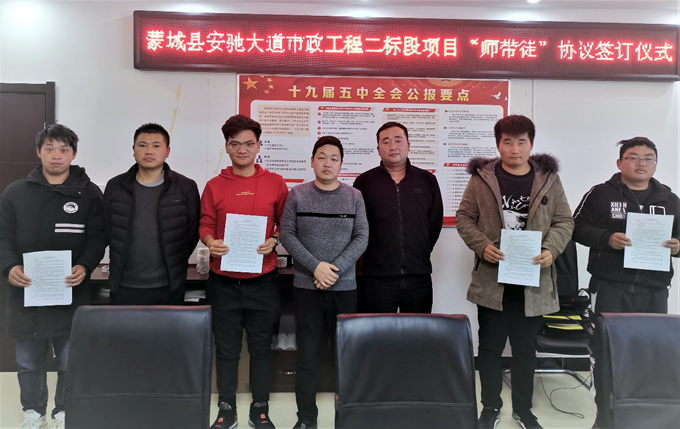 為加強項目青年人才隊伍建設,促進項目青年員工快速成長,12月12日晚,安徽交航蒙城安馳大道項目部組織開展“師帶徒”協議簽訂活動,積極落實公司“師帶徒”人才培養方案,做好“傳幫帶”工作。