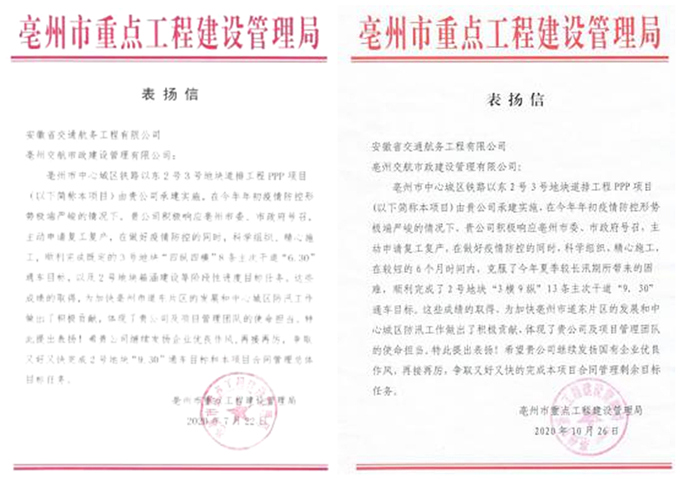 回眸過去,使命在肩。自成立以來,項目部積極探索“黨建+生產”模式,特別是2020年初疫情爆發、年中洪澇災害嚴重、年末環保管控的嚴峻情勢下,面對業主單位的“630”節點目標任務以及“930”節點目標任務,全體黨員干部沖鋒在前,有力地推動了項目生產及各項目標任務的完成。在搶工大干期間,項目部組織開展了“戰疫情、搶工期、保目標、促超產”勞動競賽,項目產值不斷刷新交航紀錄,實現單周最高完成產值1.12億,單月最高完成產值2億元,單季度最高完成產值6.69億元的驕人成績,得到了業主單位及亳州市委市政府的好評,兩次重要節點都獲得了亳州市重點工程建設管理局的表揚信。截至12月底,項目部已完成全部產值任務的80%左右。