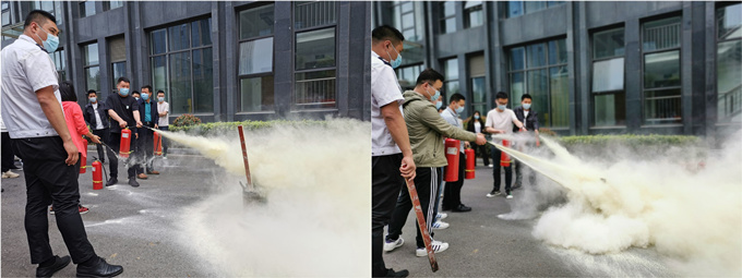培訓(xùn)結(jié)束后,公司組織職工在一樓西側(cè)廣場開展消防應(yīng)急救援演練活動(dòng)。