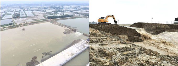 5月18日下午14點10分,在公司副督查員劉朝發統一指揮下,安徽交航水陽江航道整治工程橡膠壩項目基礎圍堰順利破除,實現過流。
