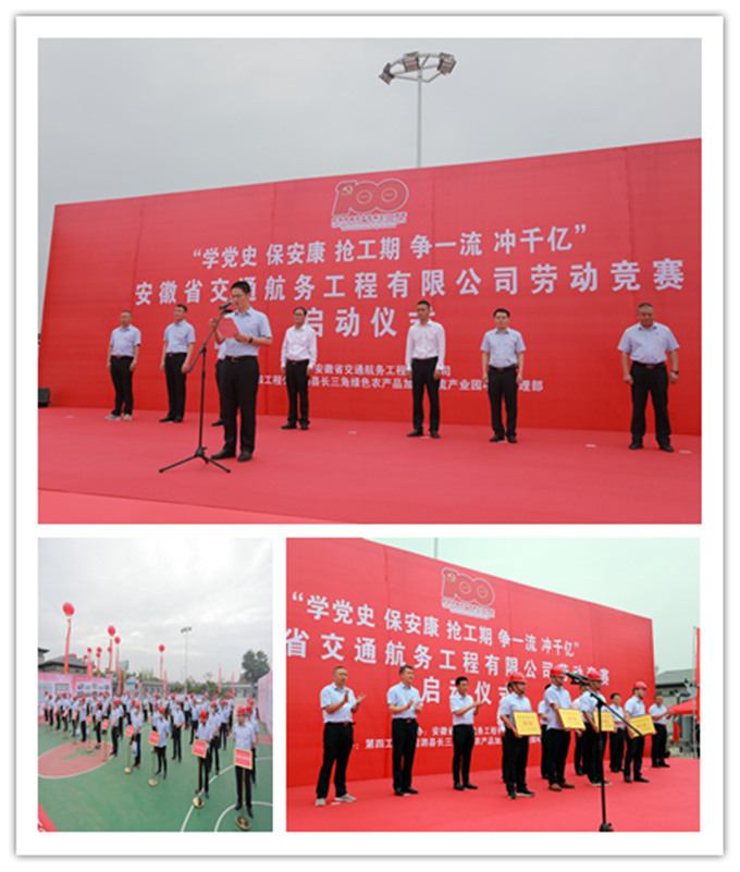 為貫徹落實(shí)集團(tuán)勞動(dòng)競(jìng)賽啟動(dòng)會(huì)議精神,快速掀起項(xiàng)目建設(shè)勞動(dòng)競(jìng)賽熱潮,6月18日,安徽交航“學(xué)黨史、保安康、搶工期、爭(zhēng)一流、沖千億”勞動(dòng)競(jìng)賽啟動(dòng)儀式在泗縣長(zhǎng)三角綠色農(nóng)產(chǎn)品加工物流產(chǎn)業(yè)園EPC總承包項(xiàng)目部舉行。泗縣縣委常委、常委副縣長(zhǎng)喻凱應(yīng)邀出席儀式,公司黨委書(shū)記、董事長(zhǎng)方申柱作動(dòng)員講話(huà),公司黨委委員、紀(jì)委書(shū)記、工會(huì)主席李楊,財(cái)務(wù)總監(jiān)高偉等參加儀式。黨委副書(shū)記、總經(jīng)理杜海峰主持儀式。