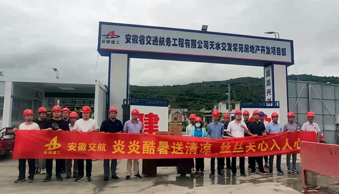 入伏以來,全國各地氣溫節(jié)節(jié)攀升。為切實做好當(dāng)前防暑降溫工作,確保職工身體健康和安全生產(chǎn),激勵項目廣大職工干事創(chuàng)業(yè)的積極性,近日,公司生產(chǎn)總調(diào)度、工程管理部主任周和友,安全監(jiān)察部主任朱云珍帶隊遠(yuǎn)赴千里到甘肅省天水市交發(fā)紫苑房地產(chǎn)開發(fā)項目,為項目現(xiàn)場職工“送清涼”。