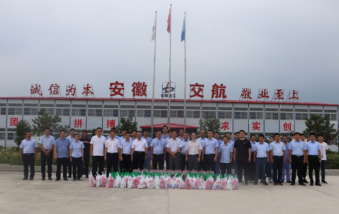 隨后,牛曙東一行深入利辛縣西淝河邵渡口大橋項目現(xiàn)場實地查看項目建設情況,看望慰問奮戰(zhàn)在施工現(xiàn)場一線的項目管理人員,并現(xiàn)場親自發(fā)放了防暑降溫物品,囑咐他們要注意高溫期間的安全生產(chǎn)和防暑降溫工作。在項目部會議室座談交流中,牛曙東聽取了公司黨委書記、董事長方申柱匯報的安徽交航目前經(jīng)濟指標完成、“1133”發(fā)展目標、“54321”發(fā)展戰(zhàn)略以及黨建工作等方面情況,并對安徽交航當前工作給予了充分肯定。