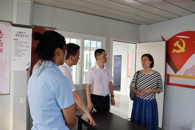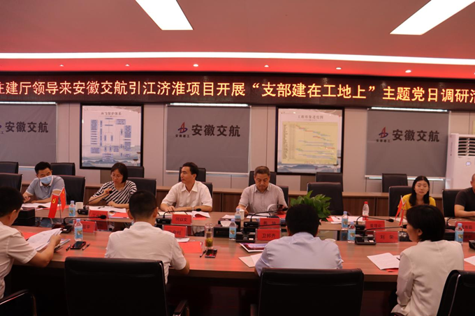 活動中,省住建廳質安處領導參觀了引江濟淮項目部新時代文明實踐點,聽取了公司新時代文明實踐點的建設由來、功能定位、建設意義以及活動開展情況的詳細介紹,著重了解了公司新時代文明實踐點“黨建領航提質筑安工作”的創新做法以及設立農民工監督員的初衷,并對公司新時代文明實踐點建設給予了充分肯定。在隨后的座談交流中,雙方首先學習了《生命重于泰山——學習習近平總書記關于安全生產重要論述》,并圍繞“支部建在工地上”的主題交流和討論了項目黨建工作和新時代文明實踐點的創新做法。