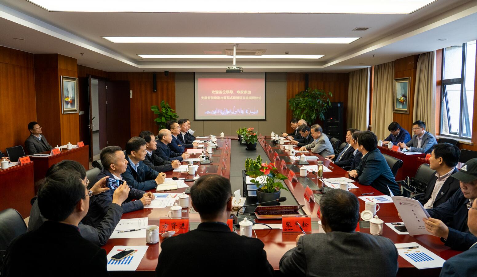 建工控股黨委委員、副總經理、總工程師戴良軍介紹研究院成立背景、研究方向及進展情況。合肥市城鄉建設局總工程師王榮村,煤炭工業合肥設計研究院黨委書記、董事長閆紅新,安徽大學原校長程樺,安徽理工大學黨委副書記、常務副校長虞寶桃及校相關部門負責人,合肥工業大學、安徽省建筑設計研究總院等有關院所負責人;建工股份有關領導,以及集團相關部門和單位負責同志參加活動。