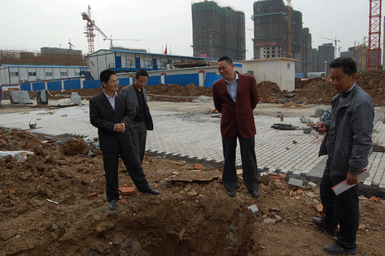 2010年11月15日,公司總經(jīng)理、黨委書記李世龍,公司總經(jīng)理助理、辦公室主任紀愛國一行蒞臨滁州市政務(wù)中心廣場工程檢查工作。