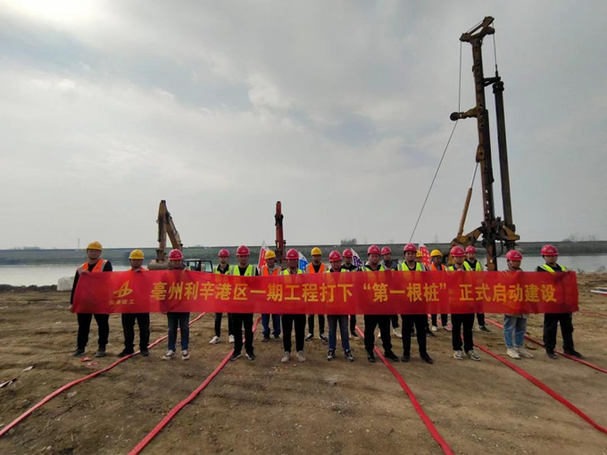 10月24日上午10時,亳州利辛港區工程項目現場人聲鼎沸、彩旗飄揚、鞭炮齊鳴、煙花綻放,由安徽交航承建的亳州利辛港區一期工程項目打下“第一根樁”開工儀式隆重舉行。業主代表、監理單位代表及項目部全體職工共20余人參加現場儀式。第一根鉆孔灌注樁順利開鉆,標志著亳州利辛港區項目正式啟動主體工程建設。