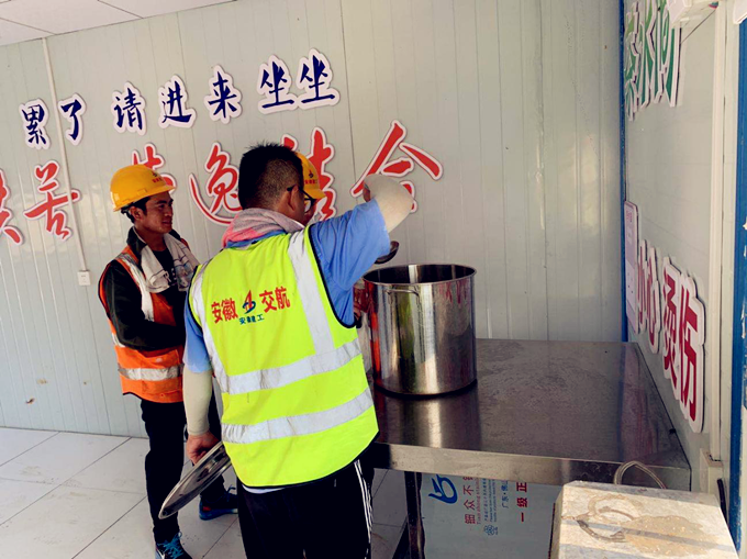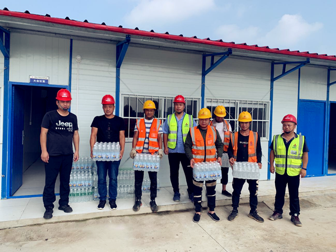 高溫期間,利辛縣S247馬胡橋項目部提前備足綠豆湯、礦泉水、藿香正氣水、龍虎人丹以及風油精等防暑降溫用品,并安排專人定期組織發放。同時,結合實際情況,靈活調整作業時間,將施工作業時間段按照工籌合理調配,確保工期節點。為營造舒適的休息空間,提升職工精神面貌,項目部按需在現場設置納涼房并在職工宿舍配備空調風扇等降溫設施,為項目建設提前做好高溫施工作業籌備工作。
