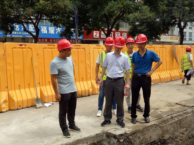 8月15日,安徽交航公司黨委副書記、總經理方申柱,黨委委員、總經理助理、蒙城交投公司董事長邵佳一行蒞臨淮北市雨污分流項目指導工作。方總一行驅車趕往施工現場視察工作開展情況,對施工現場安全文明、質量控制、施工進度等提出關鍵建議和整改要求。