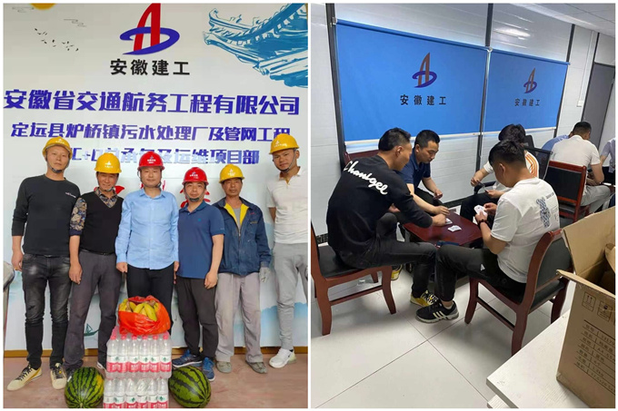 日前,定遠縣爐橋鎮(zhèn)污水處理廠及管網(wǎng)工程項目部,給“五一”期間頭頂烈日、堅守崗位的項目職工及民工兄弟送去慰問品,對他們的堅持和奉獻表示感謝,并組織開展摜蛋比賽。
