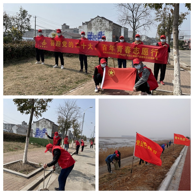 習近平總書記說過,“雷鋒精神是永恒的,是社會主義核心價值觀的生動體現。”為展現新時代青年有擔當、有社會責任感的精神風采,近日,淮北項目、泗縣項目、安建品創公司等青年團員志愿者們分別組織開展了“守護美麗華家湖,建設風景秀麗生態區”環保公益行動、“喜迎二十大,百年青春志愿行”環保活動及“為民服務青年先行”學雷鋒志愿服務活動,主動走上街頭巷尾,為街道的公共區域進行清掃路面、清運垃圾。通過一系列主題活動的開展,青年志愿者們用自身行動展現了新時代青年擔當,為守護青山綠水貢獻青春力量。