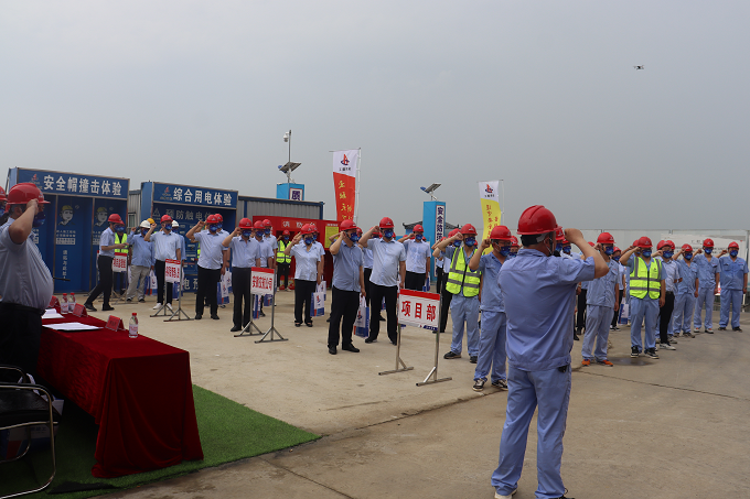 6月1日上午8點30分,安徽交航在引江濟淮項目派河口服務區施工現場舉行全國第21個“安全生產月”活動啟動儀式,正式拉開了“安全生產月”活動的序幕。公司黨委書記、董事長方申柱出席儀式并講話,公司領導班子成員、省引江濟淮集團肥西建管處副處長宋誠、天津天科工程管理公司派河口水運工程總監辦項目總監羅江川出席儀式。公司黨委委員、副總經理董雙武主持儀式。