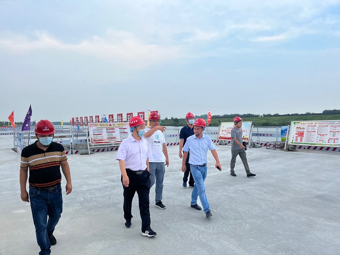 7月1日下午,安徽省交通運輸廳一級巡視員、副廳長江宗法一行,赴利辛港區(qū)一期工程項目檢查指導安全文明施工工作。