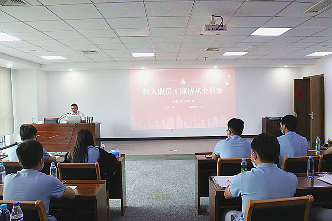 公司黨委委員、紀(jì)委書記楊松為新員工講授了廉潔從業(yè)教育課程