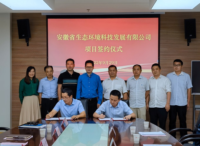 9月29日下午,安徽生態科技公司與合肥高新區管委會舉行項目簽約儀式。安徽交航黨委副書記、工會主席,安徽生態科技公司總經理黃國平代表安徽生態科技公司與高新區管委會簽約。管委會副主任呂波出席簽約儀式。