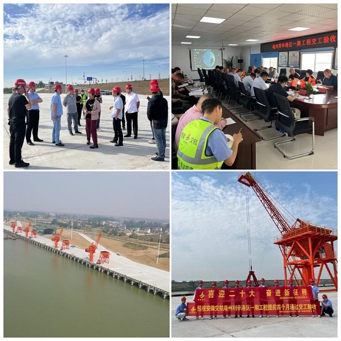 2022年9月29日,安徽交航公司亳州利辛港區一期工程項目順利通過交工驗收,比計劃工期提前4個月交工,即將正式投入運營。該工程建設12個500~1000噸級泊位,從上游至下游依次布置11個散貨(礦建材料)進口泊位和1個散貨(糧食)出口泊位,碼頭年設計吞吐量650萬噸。