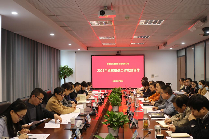 為進(jìn)一步鞏固巡察整改工作成果,壓實(shí)被巡察單位整改主體責(zé)任,11月23日下午,集團(tuán)紀(jì)委機(jī)關(guān)、黨委工作部、巡察辦、巡察組4個(gè)部門(mén)和機(jī)構(gòu)組成評(píng)估檢查小組,對(duì)安徽交航黨委2021年巡察整改工作成效進(jìn)行現(xiàn)場(chǎng)評(píng)估。安徽交航巡察整改工作領(lǐng)導(dǎo)小組副組長(zhǎng)黃國(guó)平及機(jī)關(guān)各部門(mén)負(fù)責(zé)人參加會(huì)議。