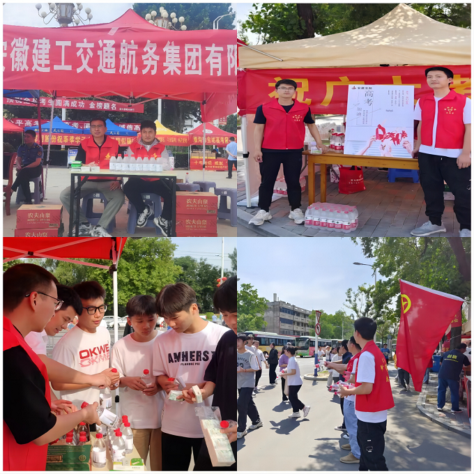 高考期間,建工交航的志愿者們在考場附近設(shè)立了愛志愿服務(wù)站,為考生免費(fèi)提供飲水、防暑藥品、考試用品、口罩、紙巾等物資,為考生提供暖心服務(wù)。