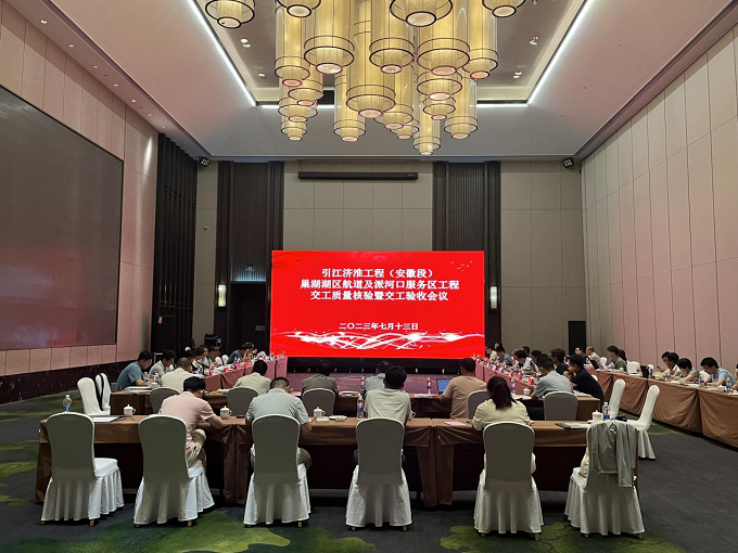 7月13日,建工交航引江濟淮工程(安徽段)巢湖湖區航道及派河口服務區工程召開交工質量核驗暨交工驗收會議。由省交通運輸廳、省交通工程質量安全管理服務中心、省引江濟淮集團、南京水利科學研究院、省交通勘察設計院、華設檢測科技有限公司、天津天科工程管理有限公司等單位代表和特邀專家組成的驗收小組對項目質量、安全、內業資料和有關文件進行了細致查看和評定。