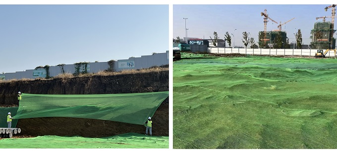 施工過程中,項目部以精細化管理為契機,積極推廣使用節能新產品,助力節能減排、降本增效。一是嚴格落實綠色施工理念,合理布置現場規劃,統籌考慮臨時設施和永久性設施,有效優化施工工序,將施工過程中用到的部分臨時設施與永久性設施一次性施工,達到降低碳排放、縮短工期、減少資源浪費的目的。二是嚴格按照標準要求配置現場設備,建設廢水收集系統,配置沖洗平臺、噴淋系統(圍擋、高桿、塔吊)、作業區霧炮、大陽能路燈等設備,為項目綠色施工提供有力保障;三是嚴格執行裸土區域全覆蓋舉措,組織項目部管理人員對土方作業裸土區域鋪設防塵網,累計鋪設面積達到3.4萬余平,有效降低揚塵污染。