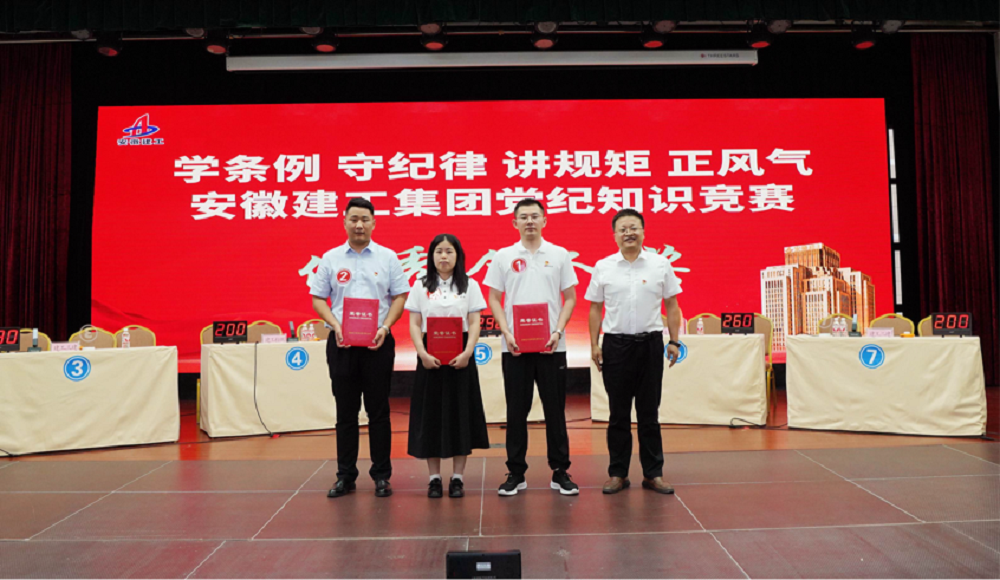 7月17日下午,由安徽建工集團(tuán)黨委主辦,安徽建工建設(shè)投資集團(tuán)黨委承辦的“學(xué)條例 守紀(jì)律 講規(guī)矩 正風(fēng)氣”黨紀(jì)知識(shí)競(jìng)賽落下帷幕,來自集團(tuán)系統(tǒng)的24支隊(duì)伍經(jīng)過預(yù)賽、決賽的激烈角逐,由水建分公司的徐鵬、朱奇和全椒建投的吳瑩組成的公司代表隊(duì)榮獲二等獎(jiǎng),其中水建分公司朱奇獲優(yōu)秀個(gè)人獎(jiǎng)。