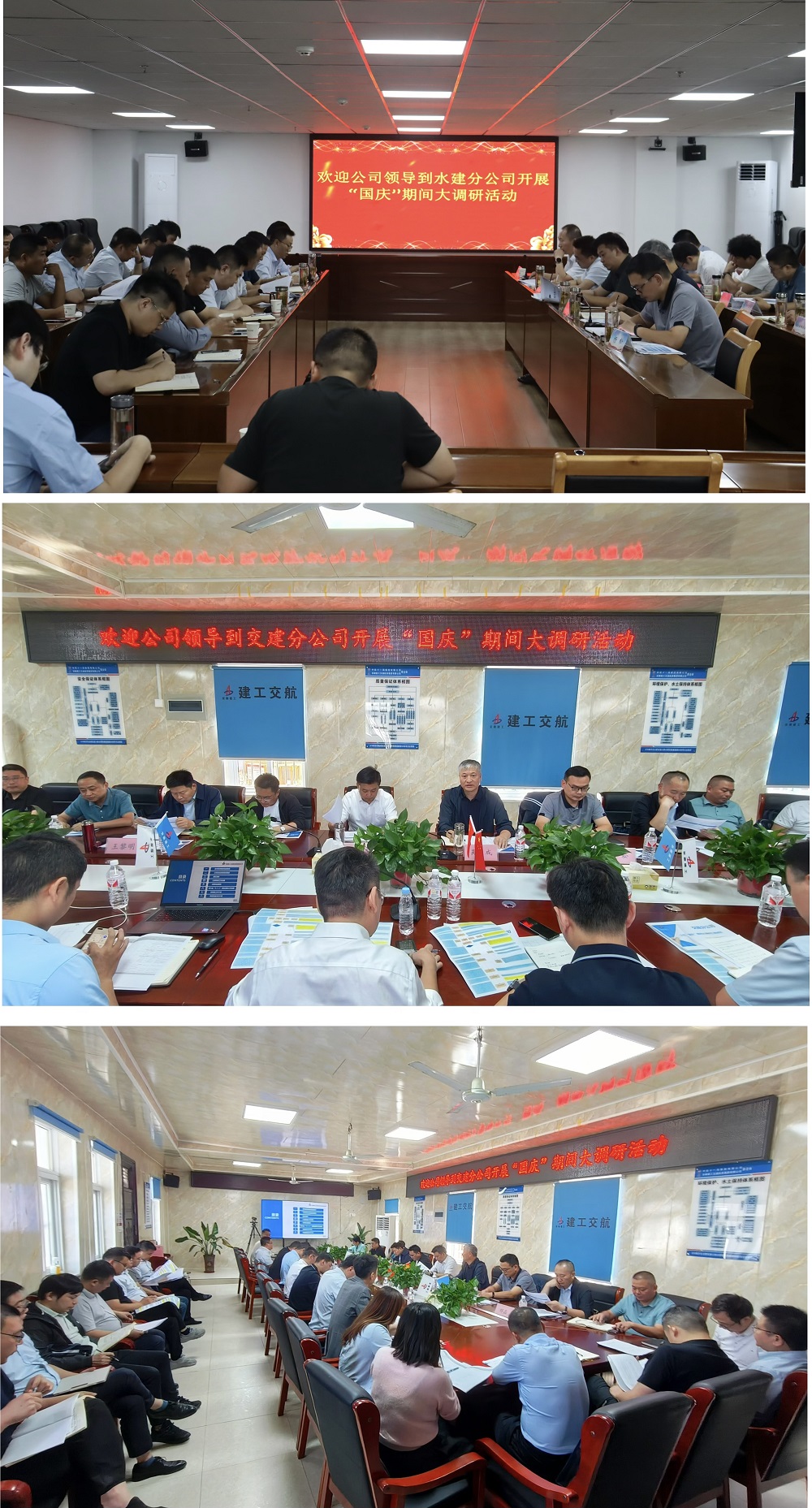 李登祥一行先后赴水建分公司、城建分公司、交建分公司及所屬重點項目,深入現場查看項目生產情況、現場重點區域假期安全保障工作,了解項目節假日期間應急值守等工作安排,會議聽取分公司及項目負責人關于分公司發展規劃、市場經營、項目建設、安全生產、人才培養等方面匯報,和與會人員進行深入交流討論。