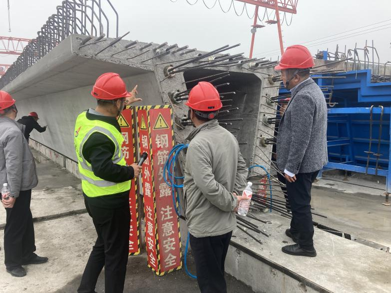 參加人員先后觀摩了建工建投集團淮桐高速05標項目拌合站、預制梁場、鋼筋加工區、大跨度橋梁施工段、路基、互通區等主要施工區域。在項目部工作人員的引導下,對項目不同區域,如拌合站、預制梁場、高速路床和互通區進行觀摩。詳細聽取了項目負責人及項目現場管理人員關于項目整體概況、項目管理、安全文明創建、質量管控、施工難點等多方面的介紹。大家圍繞所看、所思、所想,邊看邊交流,為大家今后工作及項目管理提供了寶貴的經驗和借鑒案例。