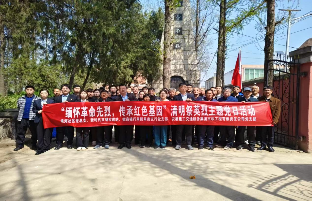 近日,市政工程有限責任公司黨支部聯合淮河社區黨總支、徽商銀行阜陽阜南支行黨支部開展“緬懷革命先烈,傳承紅色基因”清明祭英烈主題黨日活動。