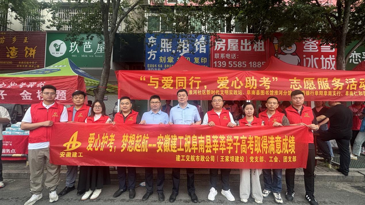 又是一年高考季,“愛心助考”再啟航。6月7日,建工交航市政工程公司(王家壩建投)攜手淮河社區(qū)、阜東社區(qū)組建高考志愿服務(wù)隊,在阜南縣第一初級中學(xué)、實驗中學(xué)兩大考點同步搭建"愛心助考驛站",以貼心服務(wù)為考生及家長構(gòu)筑溫暖港灣,用實際行動護航莘莘學(xué)子逐夢征程。