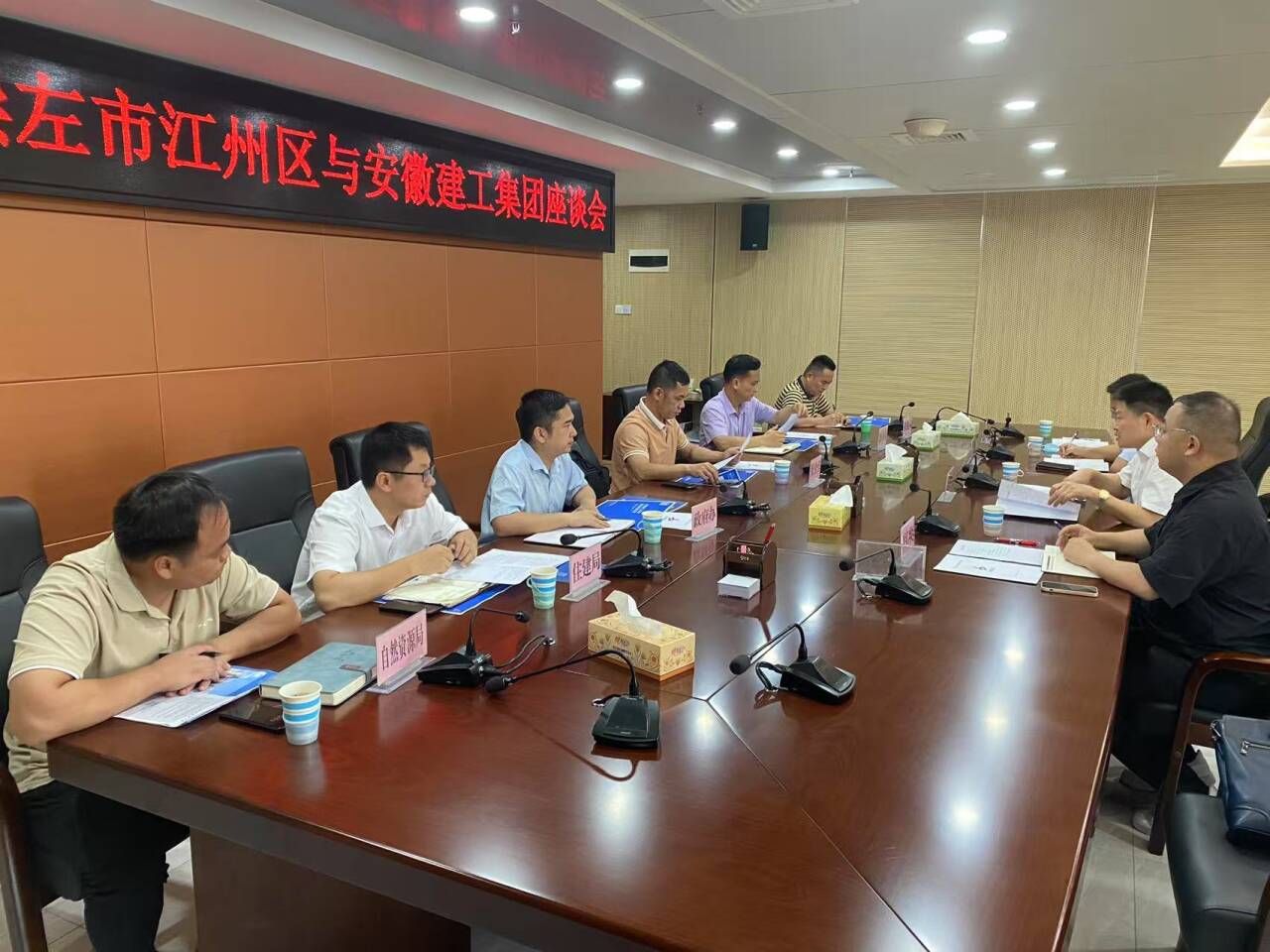 南寧市高新區、崇左市江州區有關部門領導,安徽建工集團廣西分公司有關同志參加會談。