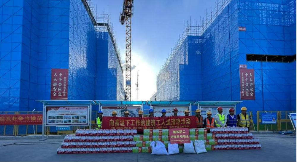 常利華聽取了項目經理關于安全生產管理、防暑降溫措施落實等情況的匯報,親切詢問工人作業時間調整、避暑設施配備等安排情況。他親手將礦泉水、綠茶等防暑物資送到工人手中,反復叮囑高溫作業要將安全健康放在首位,嚴格錯峰施工,同時要求項目部細化防暑舉措,合理調配人力物力,保障工人健康與安全。